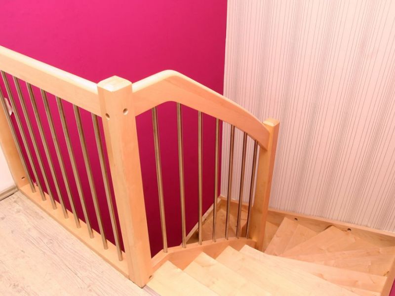Treppenkonstruktion mit einer Wendelung. Die Treppe dreht sich um 180 Grad. Oft mit Podest, das ein Zwischengeschoss bildet.