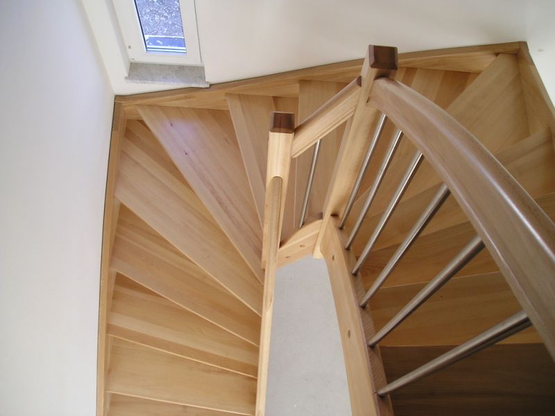 Treppen mit einer 90-Grad-Drehung. Kompakte Lösung für kleinere Räume.
